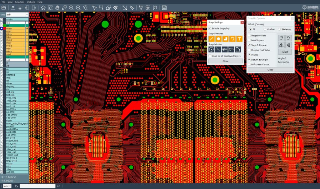 OpenCAM是由無錫東領(lǐng)智能科技股份有限公司開發(fā)的一款輕量級PCB CAM圖形查看器。基于C++開發(fā),具有超高的圖形顯示效率,完全支持ODB++8.1格式。
